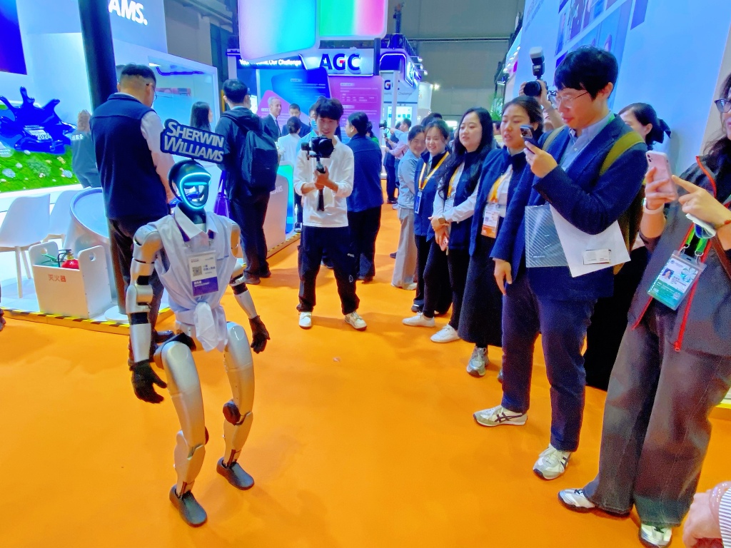 第八届进博会展馆内,机器人吸引不少观众驻足。